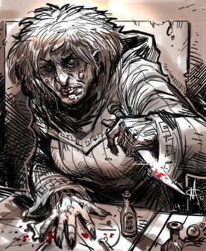 In Lannisport it was said that she had been young and beautiful when her husband had brought her back from the east with a load of spices, but age and evil had left their marks on her.[1]