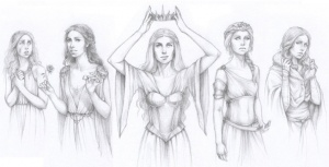 The potential queens? Myrcella, Margaery, Cersei, Daenerys, and Sansa – by Achen089 ©