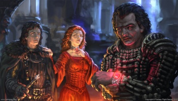Her eyes were two red stars, shining in the dark. At her throat, her ruby gleamed, a third eye glowing brighter than the others.[4]