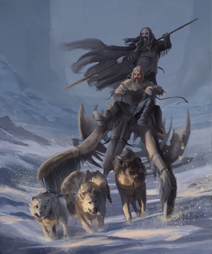 The Frozen Shore men have queer names, as they name themselves after beasts of the region. They employ chariots made of walrus bone, pulled by dogs as large as direwolves, as transport. They also breed reindeer. Their women clad themselves in sealskins.