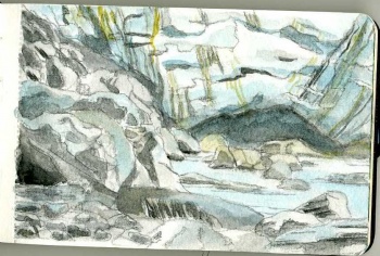 The Milkwater is a river beyond the Wall. Its headwaters begin in a lake at the foot of a glacier in the Frostfangs.[1][2] It flows south past the Fist of the First Men through the haunted forest, possibly through the Gorge to the Bay of Ice.[3] Following the stony banks of the milky-white Milkwater[4] is the easiest way to access the Frostfangs.[1]