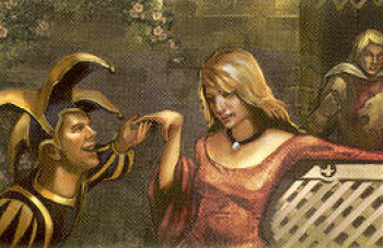 He performs during the royal feast during the Tourney of the Hand, making witticisms about the various nobles in attendance and walking on stilts. Sansa wonders if he truly is the simpleton he claims to be, his song about the High Septon (the fat one) even makes Septa Mordane laugh.[2]