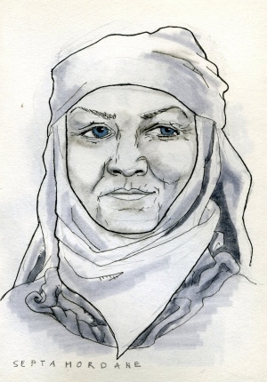Mordane is the septa at Winterfell. She serves as tutor to the Stark girls, Sansa and Arya.[1]
