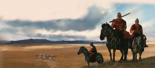Jogos Nhai astride zorses on the plains of the Jogos Nhai - by Marc Simonetti ©