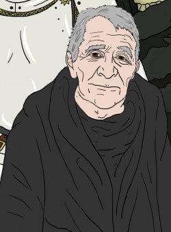 Qyburn was old, but his hair still had more ash than snow in it, and the laugh lines around his mouth made him look like some little girl's favorite grandfather. A rather shabby grandfather, though.[7]
