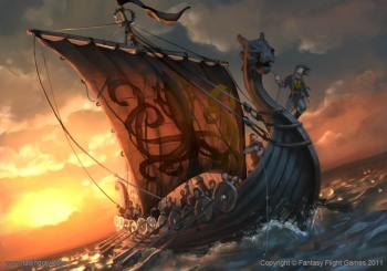 Ralf Stonehouse captains the Red Jester from atop its prow. © Fantasy Flight Games | |