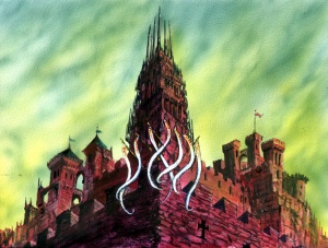 The Traitor's Walk is a pathway[3][26] leading to a squat, half-round tower.[27] The top floor holds cells for prisoners kept in a degree of comfort, such as knights or lordlings who might be ransomed, while the entrance to the dungeons sits on the ground floor. The other floors between contain rooms for the King's Justice, the Chief Gaoler, and the Lord Confessor.[27] The dungeon entrance consists of a door of hammered iron and another door of splintered grey wood.[27]