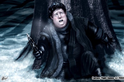 Samwell arrives at Castle Black shortly after Jon Snow and is immediately mocked for his size and timid nature. Ser Alliser Thorne, the master-at-arms, joins in the mocking, nicknaming him "Ser Piggy" and doing nothing to prevent the other recruits from bullying him and hurting him during their training. Miserable, Sam finds a friend in Jon, with whom he shares his story. Jon takes pity on Sam and, to Alliser's annoyance, takes it upon himself to persuade (and threaten, when necessary) his fellow recruits to stop their abuse.[1]