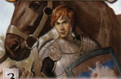 Shadrich is not a tourney knight, instead saving his valor for the battlefield. He rides a rangy chestnut courser. He has a cocksure manner and is sharp-witted.[1]