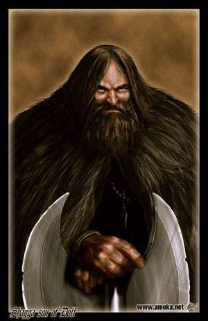 A large hairy man, Shagga has a deep, deadly voice and prefers to fight with a weapon in each hand.[3]