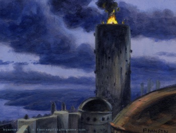 Sharp Point is the seat of House Bar Emmon in the crownlands. The castle is located along the Gullet at the northern end of Massey's Hook, north of Stonedance.[1] It has a large watchtower upon which a great fire burns atop.[2]