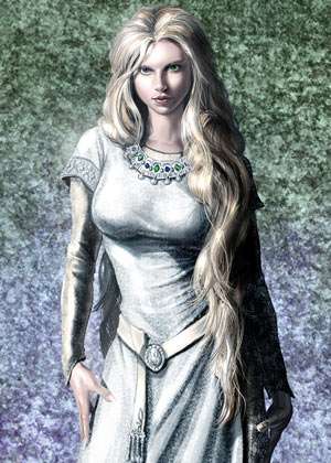 Shiera was a great reader, even at an early age, spoke many languages, and maintained a large and arcane library. She also was reputed to share her mother Serenei's skill in the dark arts. Shiera was known to possess a heavy silver necklace, alternating star sapphires and emeralds to compliment her unusual eyes.[3]