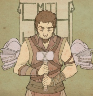 The Smith represents crafts and labour. He is usually prayed to when work needs to be done, for strength. He carries a hammer. The Faith believes that the Smith gave the horse to man to aid him.[2] The Seven-Pointed Star states the Smith gave iron to Hugor of the Hill, although the Rhoynar believe they instead taught ironworking to the Andals.[3]
