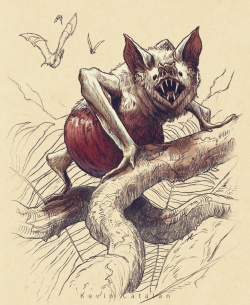 Farther south, in the Green Hell there are reports of white vampire bats that can drain the blood of a man in minutes, tattooed lizards that run down their preys and rip them apart with long curved claws on their hind legs, snakes fifty feet long, spotted spiders, and the most terrible of all predators: wyverns.[5]