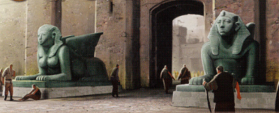 Once in Oldtown Sam enters the gates of the Citadel, which are flanked by a pair of towering green sphinxes. They have the bodies of lions, the wings of eagles, and the tails of serpents. One has a man’s face and the other a woman’s. [4]