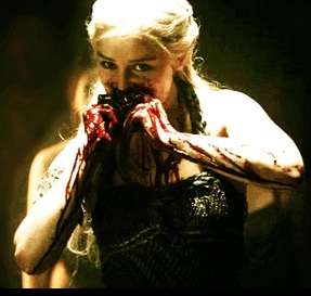 The heart is steaming as Drogo sets it in front of Daenerys Targaryen. The heart is tough and stringy. However, Daenerys had prepared herself for the ceremony by dining on bowls of half clotted blood to accustom herself to the taste, despite her tender mother's stomach, and starved herself for a day and a night before the ceremony, hoping that the hunger would help her keep down the raw meat.[1]