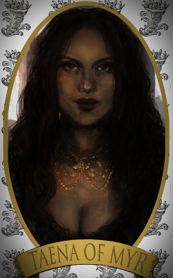 Taena of Myr,[2] also known as Taena Merryweather,[3] is the Myrish wife of Lord Orton Merryweather and is the Lady of Longtable. They have one child, Russell.