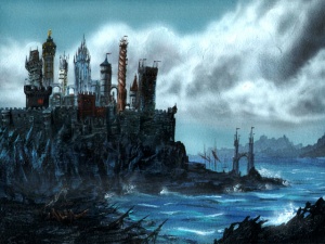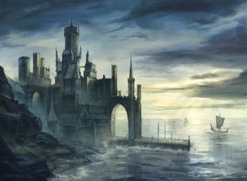 The newest castle in the Iron Islands, Ten Towers was built by Lord Theomore Harlaw, who blamed the deaths of three infant sons on the dampness of ancient Harlaw Hall, which often flooded. The new castle was built at a better site, but the mercurial Theomore constructed ten towers different in appearance. There is good fishing off the Long Stone Quay.[3]