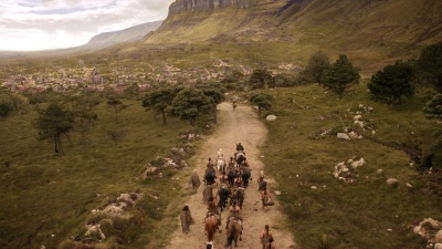 After wedding Khal Drogo outside Pentos,[5] Daenerys Targaryen travels with his khalasar to Vaes Dothrak,[1] where she is presented to the dosh khaleen.[2] She survives an assassination attempt in the markets, leading Drogo to announce he will lead his khalasar against the Seven Kingdoms.[4]
