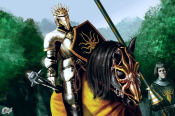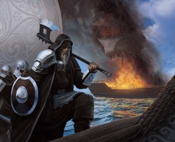 Victarion wears mail and leather day and night for protection from crannogmen. He leaves a token force to defend Moat Cailin under the command of Ralf Kenning and returns to the Iron Islands with his fleet to decide on the succession of the next iron king.[3]