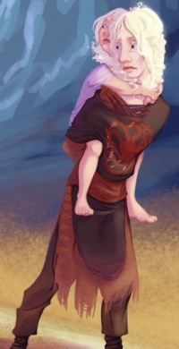In 284 ᴀᴄ, nine months after they fled King's Landing, Rhaella died while giving birth to Viserys's younger sister, Daenerys, during a storm which destroyed most of the Targaryen fleet, which had been anchored at Dragonstone.[9] Stannis Baratheon was about to set sail with his new fleet for the assault on Dragonstone, and the garrison of Dragonstone was prepared to turn Viserys and his sister over to him, but Ser Willem Darry and four loyal men smuggled the children to the Braavosian coast.[9][27]