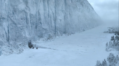 Feigning allegiance to the wildling cause, Jon climbs the Wall with a group of wildlings. Sheets of ice break off, leading to the death of Jarl.[6] They descend from the Wall at Greyguard.[18]