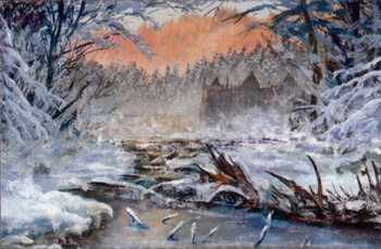 Theon Greyjoy remembers escaping from the Dreadfort with Kyra and stumbling over half-frozen stones in the icy Weeping Water; the escape turned out to be a hunting game devised by Ramsay Bolton.[5]