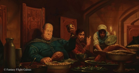 Roger: He loves his steaks and chops and meat pies, though. Prowling the castle by dark would require him to leave the table. The only time he does that is when he seeks the privy for one of his hourlong squats.[24]