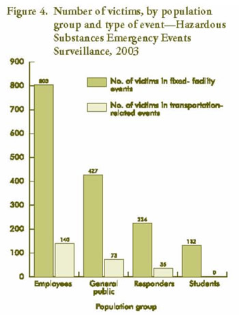Figure 4 – Number of victims, by population group and type of event-Hazardous Substances Emergency Events Surveillance, 2003