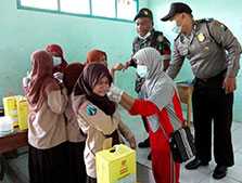 A team from the district health office and police respond to a diphtheria outbreak at a junior high school in Bondowoso District, East Java, Indonesia in June 2011. 37.9% of children at the school were suffering from diphtheria.