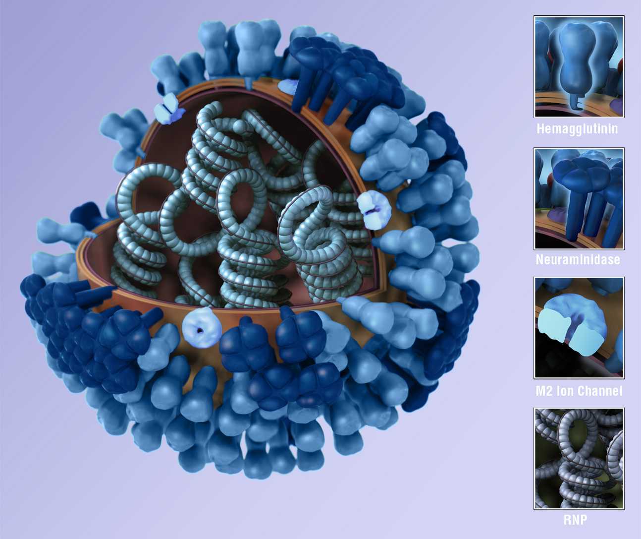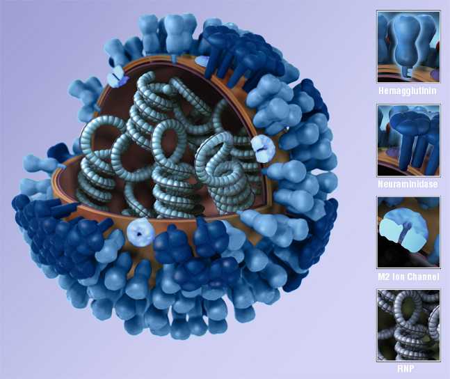 These images provide a 3D graphical representation of the biology and structure of a generic influenza virus, and are not specific to the 2009 H1N1 virus. Available for download in 72 dpi.