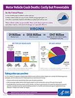 The fact sheets below highlight the cost of deaths from motor vehicle crashes and show which age groups and types of road users account for the largest portion of these costs in each state. Within these fact sheets the CDC also makes recommendations of proven strategies that could strengthen each state’s motor vehicle injury prevention efforts, and save both lives and money. For example, rates of seat belt use are 9 percentage points higher in primary enforcement states compared to secondary enforcement states.1 Such an increase is important since seat belt use reduces the risk of death by about half.2 Many evidence-based strategies, including the primary enforcement of seat belt laws for all seating positions, can significantly reduce the number of injuries and deaths from motor vehicle crashes and the related costs.