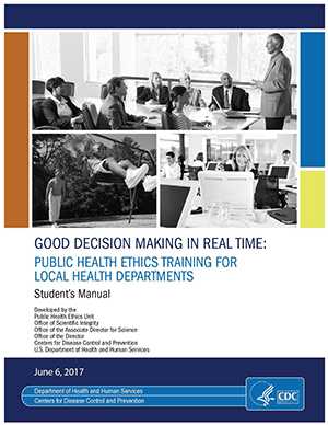 As part of CDC’s ongoing efforts to support state and local health departments, the Public Health Ethics Unit has developed a training manual to be used as a tool to strengthen public health ethics capacity at the local level. The manual includes an introduction to public health ethics, relevant case studies, suggestions for integrating ethics into health departments, and additional resources. The Student version of the manual may be downloaded here; the Facilitator version is available upon request.