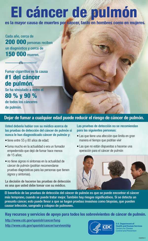 - no tiene signos ni síntomas en la actualidad de cáncer de pulmón (podrían recomendarse pruebas diagnósticas para las personas que tienen signos y síntomas).