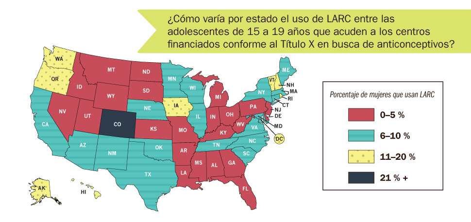 Gráfico: ¿Cómo varía por estado el uso de LARC entre las adolescentes de 15 a 19 años que acuden a los centros financiados conforme al Título X en busca de anticonceptivos?